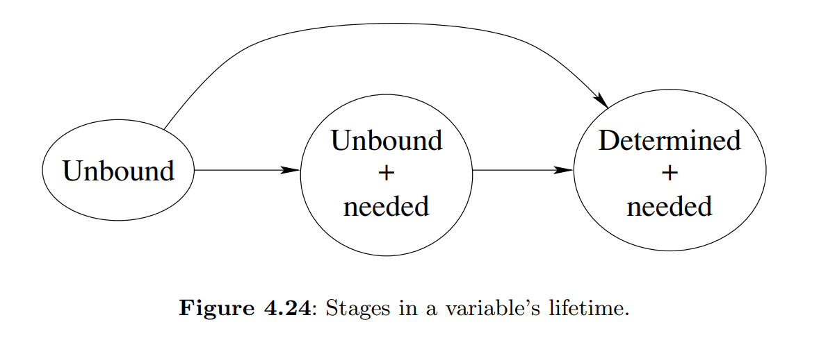 Single-assignment store | Variables are bound to a value or unbound. Single assignment. |