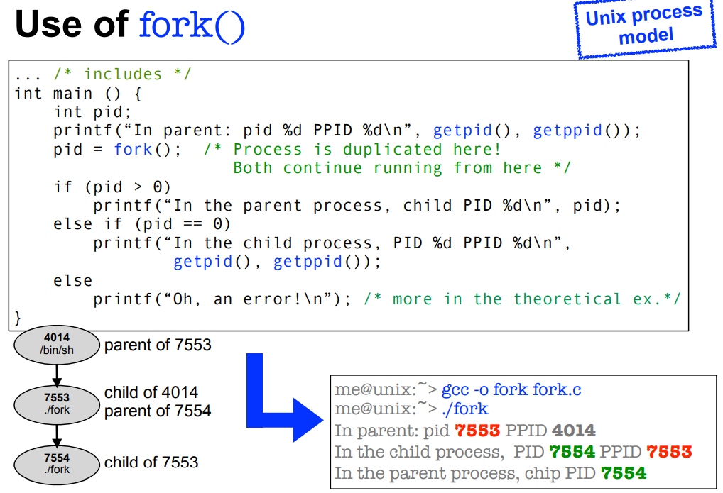 - Parent/child processes, orphans, zombies and PID 1 (init)