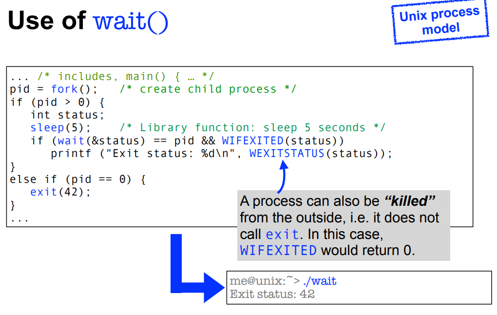 parameter, the caller is passed the child's "exit status" (and more) wait