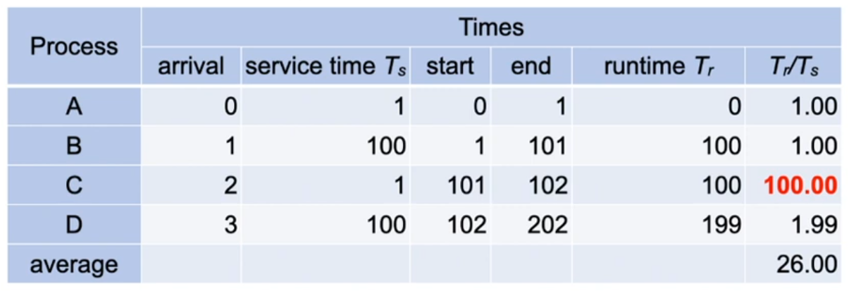- Short processes finish in a relatively short amount of time, but long processes can starve
