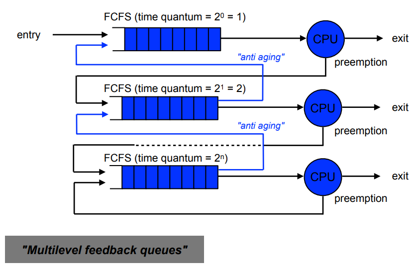 - It is possible to consider the waiting time to move a process back to a higher priority level (anti-aging)