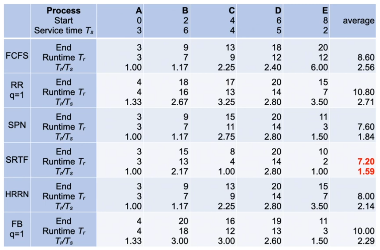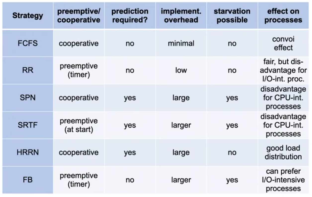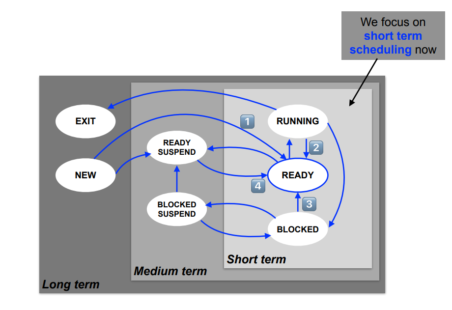 - All algorithms discussed in this lecture are considered short term scheduling approaches: