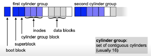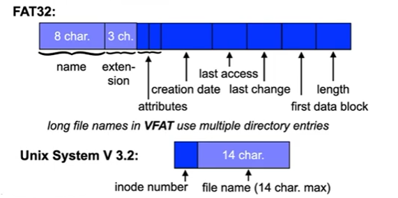 - Unix System V, BSD FFS, Linux ext2/3/4