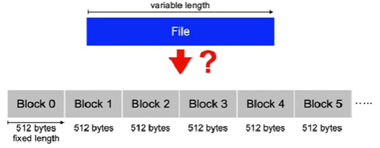 - Split a file into sequences of blocks stored contiguously (called chunk, extent or cluster)