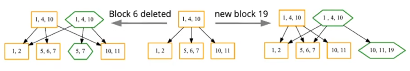 - Blocks are not overwritten, but only appended to the log