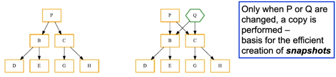 - Fast writes: Special "CoW friendly" B+ trees