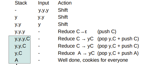 Bottom-up parsing buffers input until it can build productions on top of productions.
