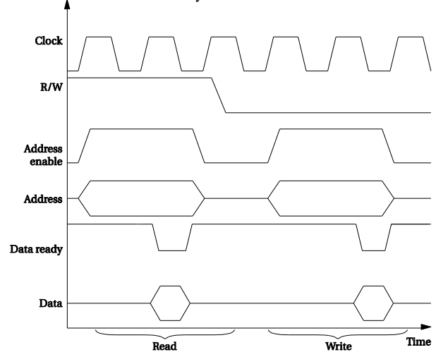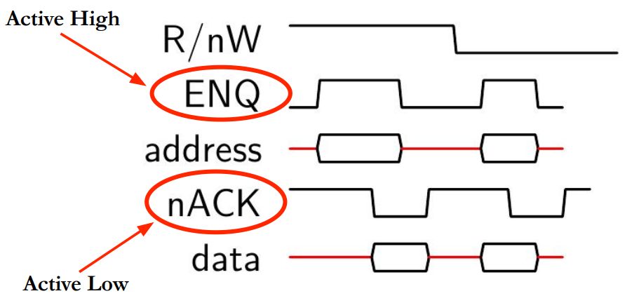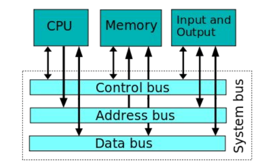 - Control bus: wires to implement bus protocol e.g. read, write, interrupt request, etc. Often bidirectional but most individual wires are unidirectional