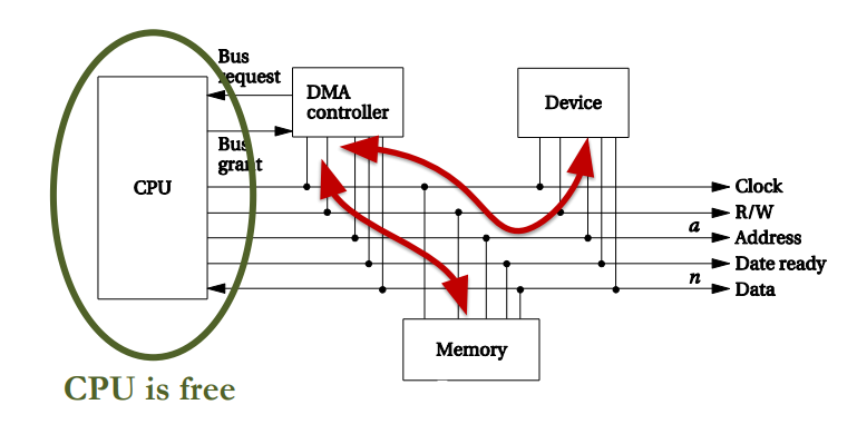 - CPU does not need buses during DMA if the data in caches is enough to keep it busy