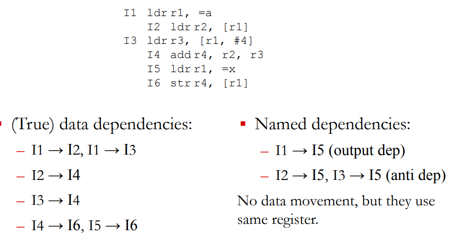 - Control dependencies: instruction execution depends on the outcome of a branch instruction
