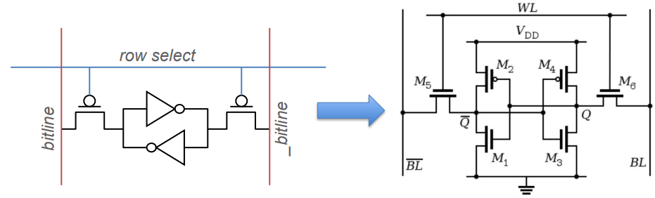 Higher density (1T-1C cell) β Stores more bits per units area | Lower density (6T cell) β Stores less bits per unit area |
