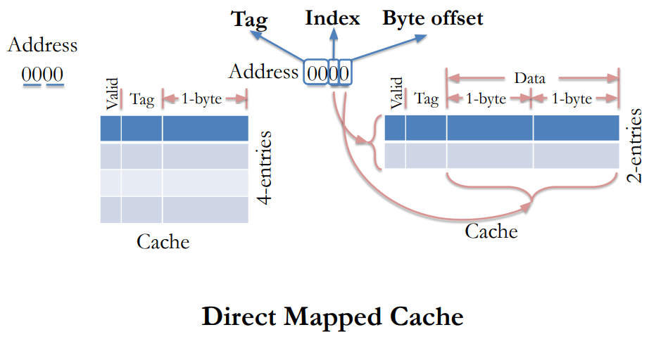 - Cache size: refers only to the size of data portion, not tags and valid bits.