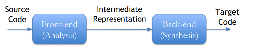 β’ Read source program β’ Break it up into basic elements β’ Check correctness, report errors β’ Translate to generic intermediate representation (IR)