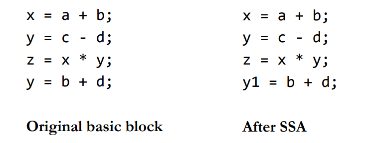 - Static Single Assignment is employed to ease optimizations