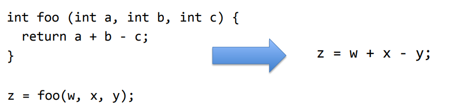 - Replaces call with the body of the callee (called function)